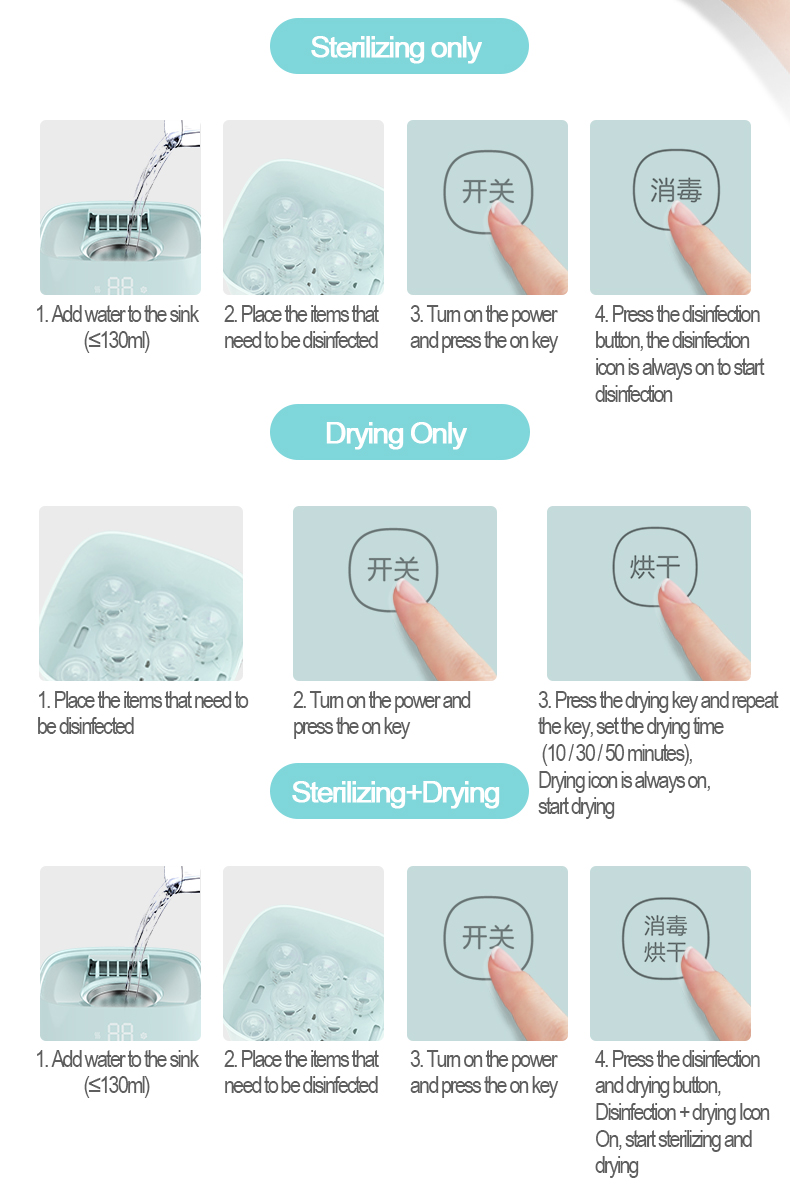 3 合 1 可调节模块化设计触摸控制面板操作大容量(8 瓶)10 分钟内快速杀菌干烧保护杀菌、干燥、杀菌 + 干燥